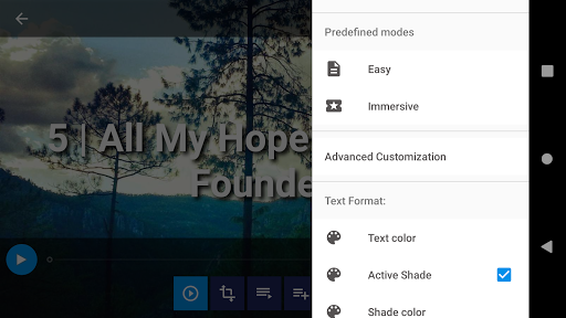 - Custom backgrounds for the hymn viewer and the main screen