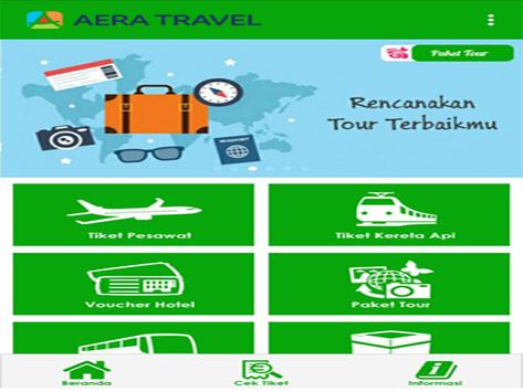 Aera Travel di desain dengan tampilan yang sederhana sehingga memudahkan pengguna untuk melakukan pencarian dan pemesanan tiket. Sampai saat ini Aera Travel terus berkembang dan berusaha mencari solusi terbaik untuk memudahkan pengguna melakukan perjalanan ke seluruh Indonesia. Aera Travel selalu berusaha menjadi solusi serta awal yang baik bagi perjalanan pelaku bisnis, juga awal yang menyenangkan bagi perjalanan wisata.