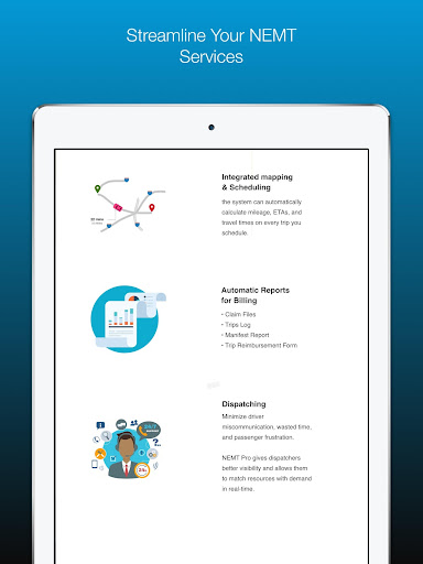 Increase the reliability and flexibility of your NEMT service. With up-to-minute information about trips assignment and operational updates from the central dispatch system, you can view detailed information, including special needs of patients, all at the comfort of your mobile device.