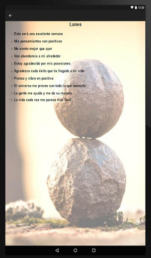 Обзор Ежедневно Эти утверждения заправляют закон притяжения начать работать для вас в позитивном порядке. Эти приложения содержат мотивационные фразы, фразы для привлечения любви, экономического изобилия, счастья, здоровья и многих преимуществ, которые вы обнаружите.