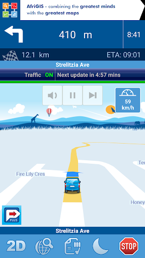 AfriGIS Navigator offers you a complete voice guided navigation system with integrated logbook functionality for your mobile device, on data for South Africa