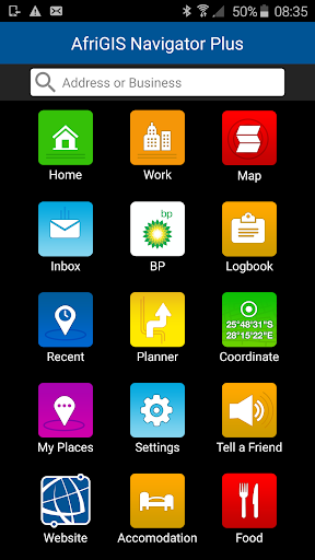 The AfriGIS Navigator application is built on the specific operating system of your phone, leveraging the unique features of your handset. The application makes use of the AfriGIS Navigation Server via the mobile Internet, integrated with our high quality AfriGIS map set.
