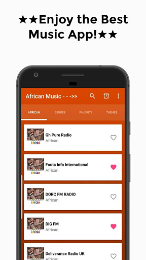 You have found it! This is one of the Best Free Music Apps for your Smartphone or for your Android Tablet that collects Internet Radio African Music Stations from of many other categories. You will enjoy free African Songs Online of different African singers.