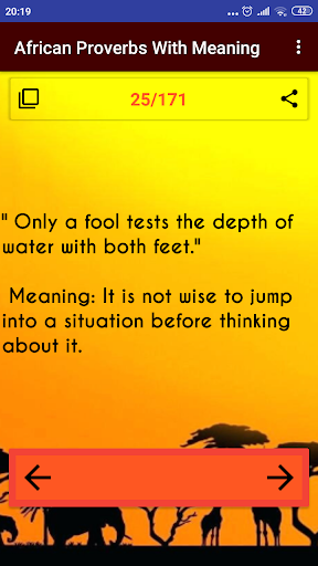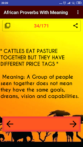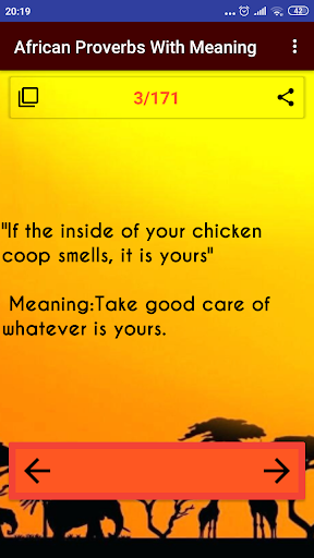 In this app, you can find out more regional level proverbs such as Jamaican Proverbs, Ghanian Proverb, Akan proverb, Kenyan proverb, Bateke proverb, Nigerian proverb, Somalian proverb, Burundi proverbs, proverbs of Sierra Leone and more African regional proverbs.