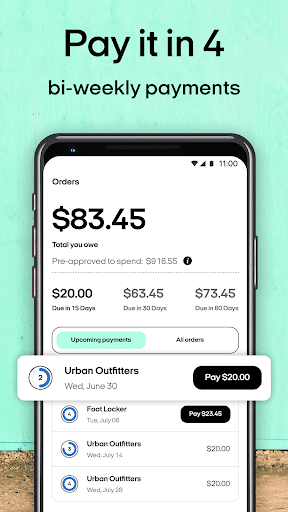 Afterpay helps you stay on top of your shopping budget and finances. Use the app to view all your current and past Afterpay orders as well as your payment history. If you need to be more flexible with your finances, you can change your payment card for future payments - or even pay off any upcoming installments early - all on the app.