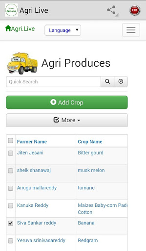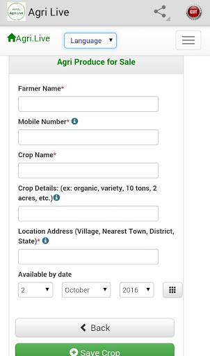 Farmers of all Agricultural produces (Grains, Pulses, Vegetables, Fruits, Flowers, Spices, Wood, Livestock, Aqua, Seeds, etc.) can add their crop details online for sale.