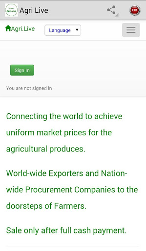Agri Live aims to create a unified transparent agriculture market system by uniform distribution and steady demand of agriculture produces; a response to the Make In India call and supplement effort to eNAM (electronic National Agriculture Market).