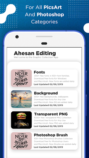 These Ahesan editing is such an amazing app. Weekly Update New Background, PNG ,Photoshop Brushes And Fonts download for photo editors because in this app you will get extremely high-quality PNG Backgrounds, CB Backgrounds,New Stylish Fonts, Photoshop Brushes for photo editing, the top main feature is that you will also get any type of PNG images for free and it consists 30 different type of PNG categories as well as bunch of Ahesan Editing to download it for free and edit your photo like CB.