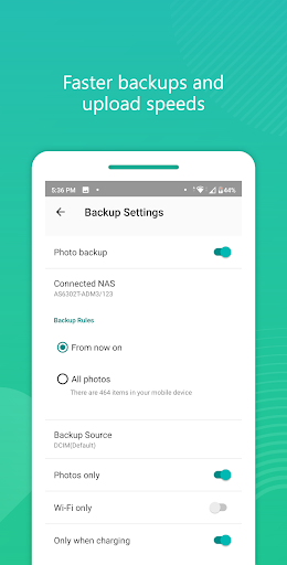 *For NAS model AS10 series user, if you have more than15000 photos in your phone and want to auto-backup at one time, we suggest go to NAS Off-peak Hours to disable background process and enable background process once upload finish.