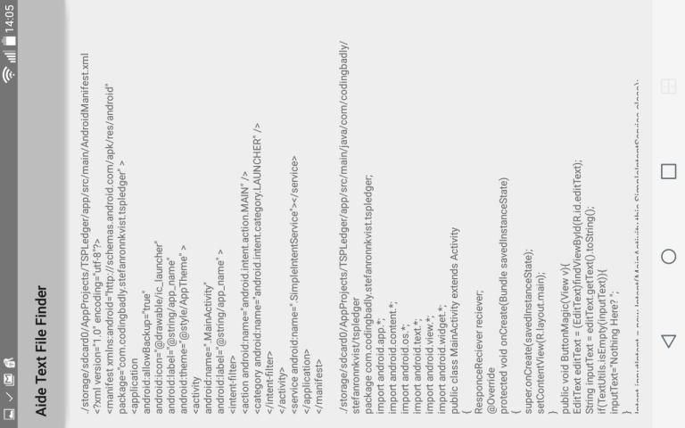 This utility only works with AIDE app and in default file structure. The text file is called AideTextFiles.txt. The code is simple and will be upgraded as time permits.