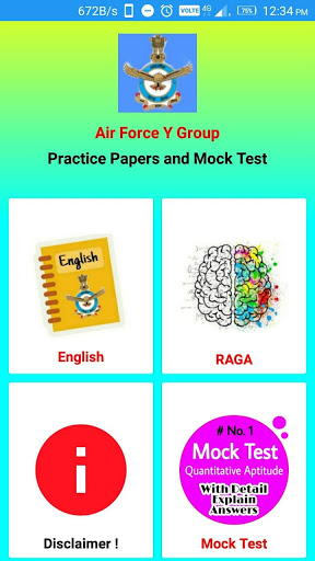 Open the application then you find Menu page which has RAGA, ENGLISH and Online Mock Test Series three different Sections. On your choice choose the RAGA , ENGLISH or Online Test then you find a list of Practice Question Papers or list of chapter wise mock test choose the Practice papers or chapter wise mock test which you want then Practice Question papers on you Screen You Solve, enjoy and improve your Indian Air Force exam preparation.