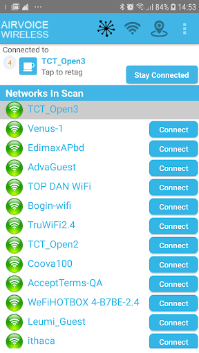 AirVoice WiFi is a free app for your mobile device that finds, manages, and automatically connects to available WiFi hotspots. The app helps increase your device’s WiFi connections while minimizing your cellular data consumption by making the most out of available Wi-Fi hotspots.