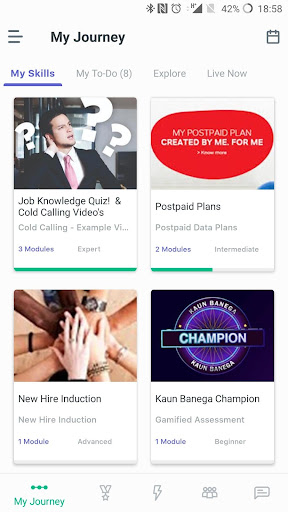 Airtel Digital Tv Learn Camp is the mobile application that hosts a number of interactive programs, assessments, discussion Groups etc. for the Airtel DTH Team. Users can access items such as reading material, audio, video, quiz, flashcards, surveys etc. that admin assigns to them. Users can also access Success Stories, visit Photo Gallery and chat under various Discussion Topics
