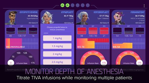 - Monitor vital signs and level of sedation based on stability or distress caused to virtual patients