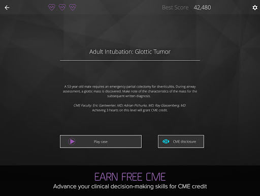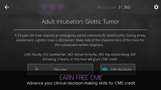 - Earn Continuing Medical Education (CME) credits when you play through cases
