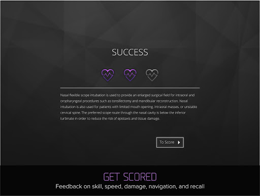 Our app provides unprecedented medical realism, enabled by the accurate simulation of human tissue dynamics, realistic scope optics, and moving fluids to recreate life-like airway procedures. We also provide a new modality for continuing medical education (CME), offering AMA PRA Category 1 Credits(TM) for completing airway procedures in-app.
