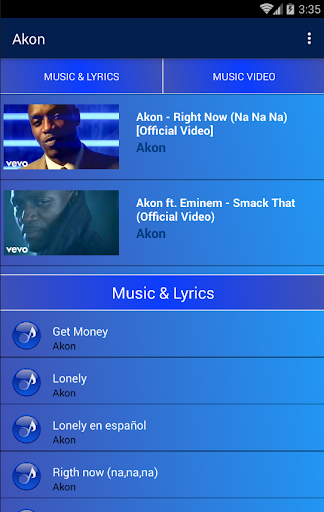 Free Music, Lyrics and Videos Apps "Akon" for you fans.