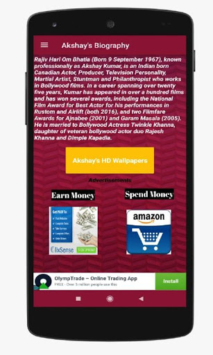 Rajiv Hari Om Bhatia (Born 9 September 1967), known professionally as Akshay Kumar, is an Indian born Canadian Actor, Producer, Television Personality, Martial Artist, Stuntman and Philanthropist who works in Bollywood films. In a career spanning over twenty five years, Kumar has appeared in over a hundred films and has won several awards, including the National Film Award for Best Actor for his performances in Rustom and Airlift (both 2016), and two Filmfare Awards for Ajnabee (2001) and Garam Masala (2005). He is married to Bollywood Actress Twinkle Khanna, daughter of veteran bollywood actor duo Rajesh Khanna and Dimple Kapadia.