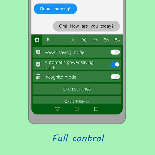 When you want to save your battery energy, Akuru will save your battery by stopping battery consuming services like Vibrations, Sounds, Images, Voice typing, GIFs, and Light color themes.
