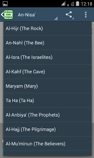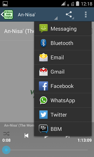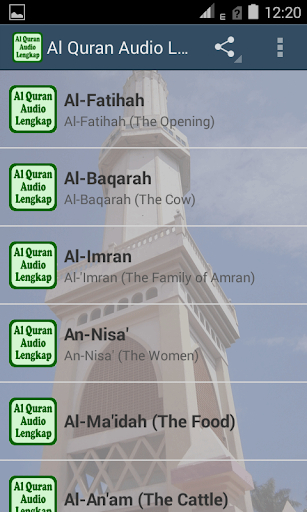 By downloading and installing the application Quran Audio Full 30 Juz, you can listen to all the verses in the Quran and also all the verses in the Qur'an, without exception, although the size of this application is small at about 90 Mega but already contains audio all the letters in the Al Quran is complete. Application Al Quran audio is also very for you who are memorizing the Quran. Since this application has features - features that are quite complete.