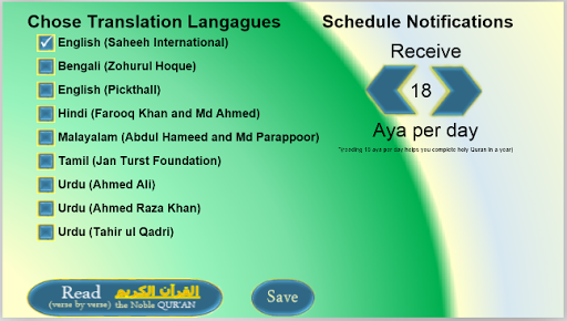 1. Sequential Ayat notifications as per the chosen frequency