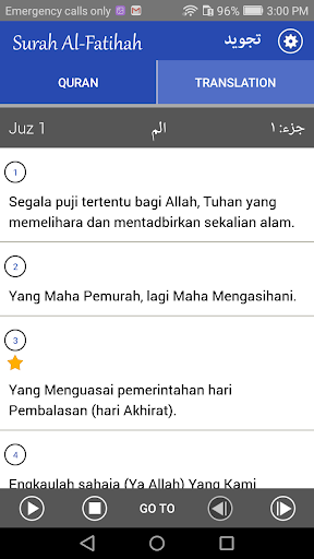 Melayu Quran Majeed has a most useful feature of transliteration, which is based on the Arabic text of Holy Quran and will allow reciting Quran easily. This feature is one of the best and main features of Quran melayu that helps in learning and also in pronunciation of Holy Quran. All the transpiration is in basic roman English and it is word by word transliteration which makes pronunciation of Arabic text easier.