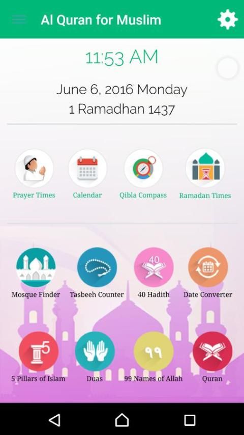 Al Quran for Muslim a beautiful All in one Islamic App with multiple features like Muslim Prayer Times with Azan feature, Qibla Compass with Distance, Islamic Calendar, Hijri Date Converter, Near Mosque Finder, Multiple Tasbeeh, Counter, 5 Pillars of Islam, Quran in Multiple Languages, Daily Duas, 99 Names of Allah, Ramadan Times with Table view and etc.
