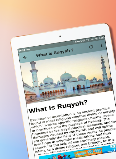 Ruqyah in Islam is the reading of the Koran, seeking protection, remembrance and asking which is used as a means to treat illnesses and other problems.