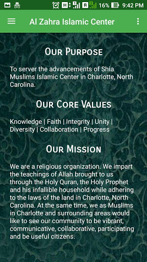 Our Purpose : To server the advancements of Shia Muslims Islamic Center in Charlotte, North Carolina.