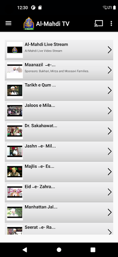 This App supports watching AlMahdi Live Stream on any TV set with Chromecast and Roku, and automatically lists the latest YouTube videos uploaded by AlMahdi TV.