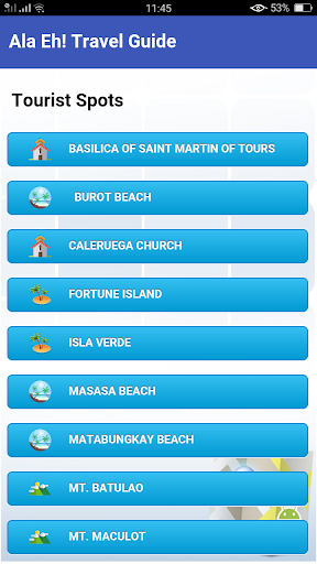 6. If you wish to go to the Tourist Attractions of Batangas, go back to the Main Menu then click the "Tourist Attractions" button.