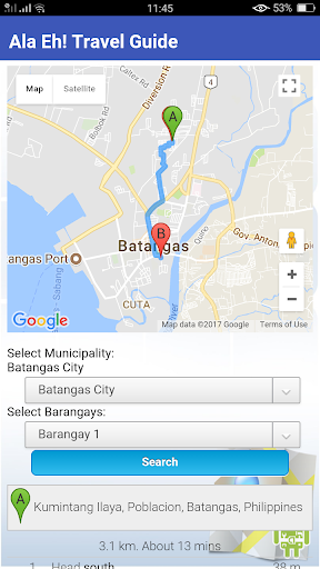 This is a mobile application that is designed for the people who loves to travel and wants to a have a road trip around Batangas. Using your mobile device, the user can access the mobile application anywhere he goes. However, in able to use the map the user should have internet connection. With the use of customized Google Map and GPS satellite intended only for Batangas. The user can select desired City or Municipality and which Barangay they want to go. The map will detect your location thru GPS. Afterwards, it will give you the exact path to follow to the Barangay you have chosen. It also includes details about that specific place. But, this mobile app doesn’t save locations. The app also features the different tourist spots in Batangas Province and the direction on how you can reach that tourist spot you desired to visit. There are also suggestions for nearby restaurants and different festivities that are celebrated around Batangas. This mobile application can contribute to the tourism of Batangas because this is a customized map that is designed and developed only for Batangas. It can help to the fast-growing tourism industry in the Province of Batangas.
