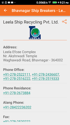 Alang Calling is available to our users to access contact information of business locations in and near Alang. The app also provides contact information of businesses related to ship breaking from Alang as well as surrounding cities. These include Ship Breakers, Material Traders, Oxygen Plants, Plate Cutters, and more.