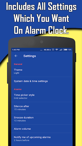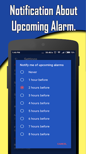 - Alarm works even screen is locked or android is in silent mode.