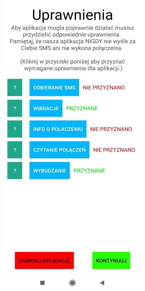 Aplikacja wymaga uprawnień do czytania SMS oraz przychodzącego połączenia