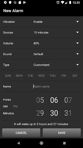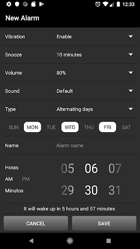 Because of its focus on simplicity, alarms are easily configurable and editable and it is very easy to add an alarm as you will have several predefined alarm types by simply choosing one of these types or if you prefer you can create and customize an alarm. your way adapting the needs of everyday life.