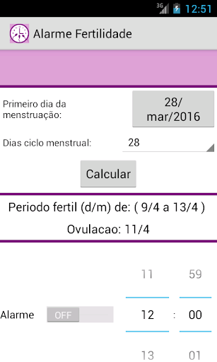 Quando alarme estiver ligado você será notificada no dia que provavelmente estiver ovulando.