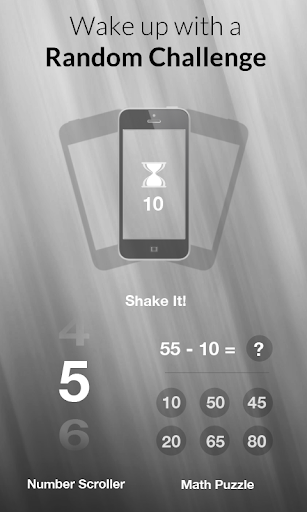 Interesting random challenges such as Math Puzzle, Number Scroller, and Shake It with your alarms to make sure that you get off the bed.