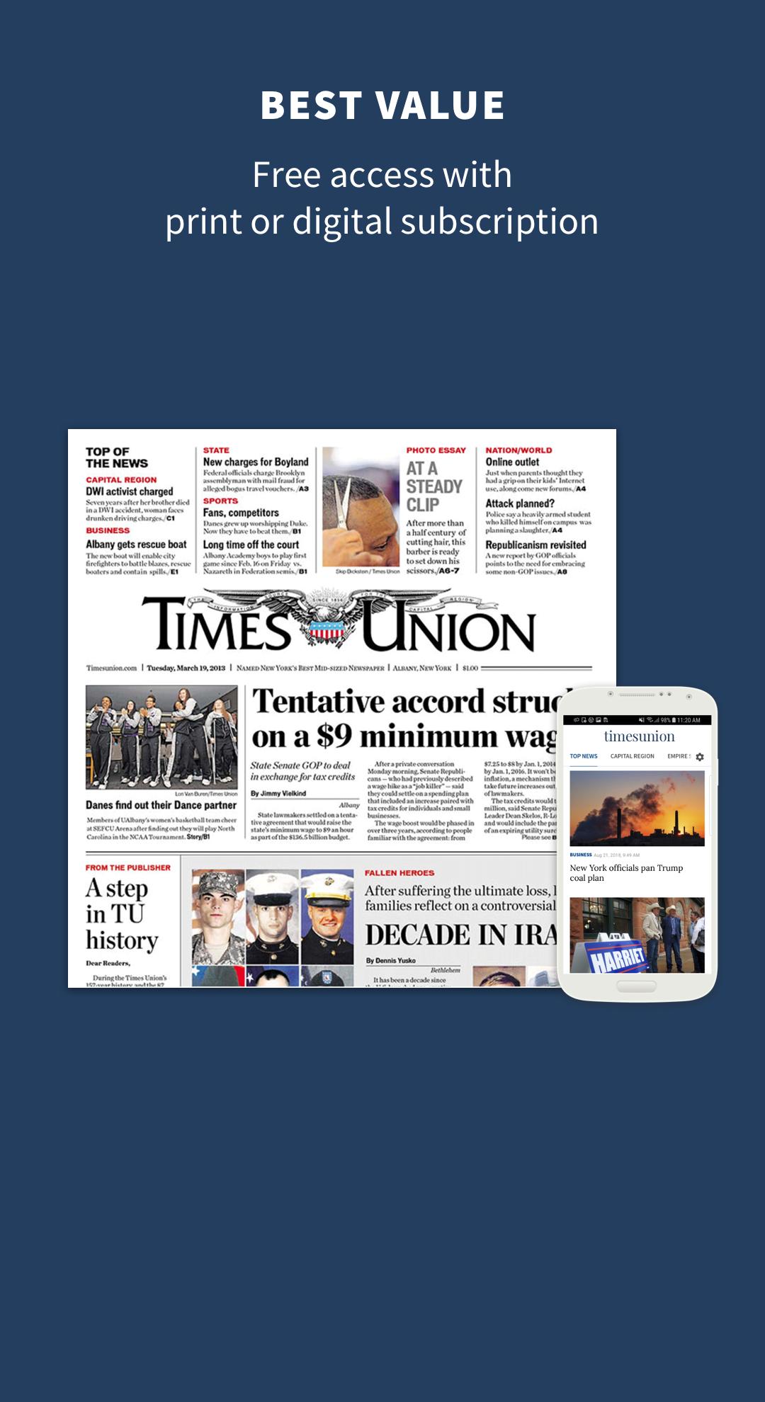 The Times Union app brings you the best of both of worlds with content from the print newspaper and unique content from the web ensuring you never miss a story.