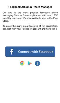 With this application you can browse through all of your Facebook albums, photos and tags as well to download and backup full albums (With no limitations) straight to your phone's gallery.