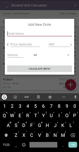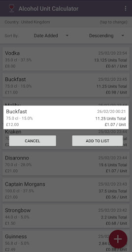 Also useful for if you need to quickly calculate how many units of alcohol you've had so far! Keeps a total number of units in all drinks added.