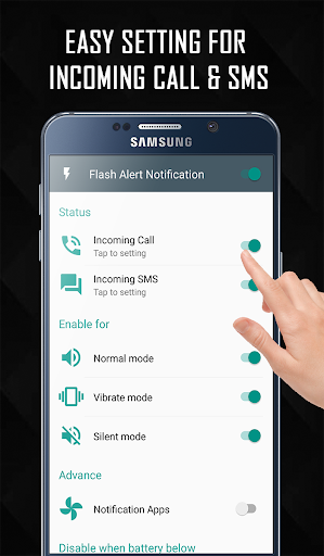 - Set flash alerts ON or OFF time for call alerts and sms flash alerts notifications