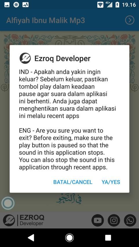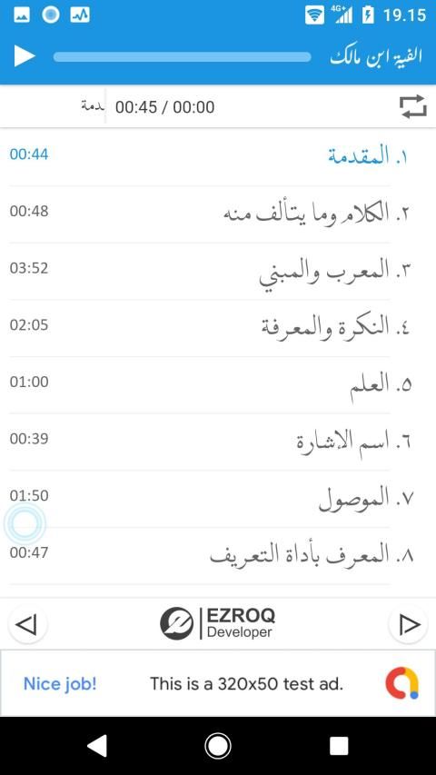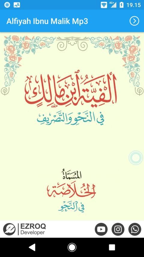 Alfiyah Ibnu Malik Mp3 is intended for users who want to memorize Alfiyah and need audio facilities to support the memorization process. This application contains audio of Alfiyah Ibn Malik with a comfortable intonation and clear articulation.