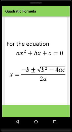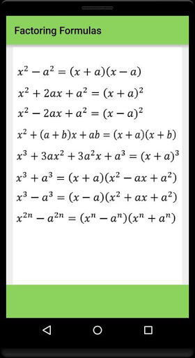 The app lists all the important Algebra Formula Solve My Math For Kids. Its very useful for student to save valuable time.