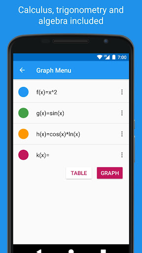 Algeo is the most beautiful scientific graphing calculator available on the Play Store. It's fast and powerful and you'll never have to carry around a large physical TI calculator anymore. The intuitive interface shows your drawn functions as you would write them on paper rather than squeezing everything on a single line. And you don't need an internet connection unlike other graphing calculators, it works offline as well! Useful for calculus, physics or to solve those x y equations.