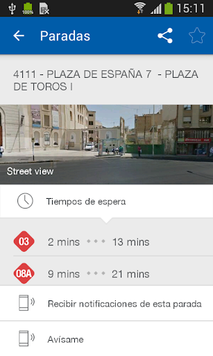 Avísame: Sistema que buscando parada, mapa o favoritos, recibir avisos sobre salidas de bus. Puedes filtrar que te avise cuando llegue el bus a la parada en una franja horaria.