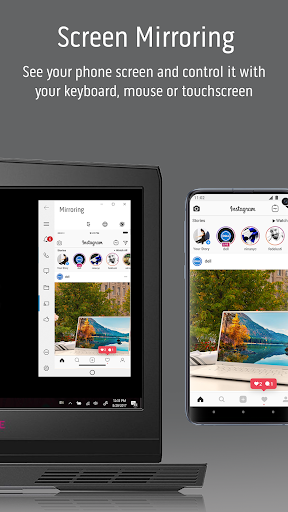 • Screen mirroring – See your phone screen and control it with your keyboard, mouse or touchscreen.