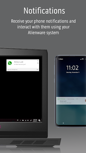 • Notifications – Receive your phone notifications and interact with them using your Alienware system.