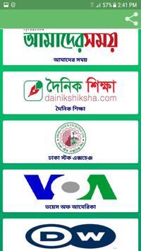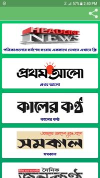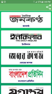 Prothom Alo (One of the most widely read newspapers in Bangladesh), Ittefaq (One of the most widely circulated daily newspapers in Bangladesh), Kaler Kantho (Daily broadsheet newspaper headquarters in bashundhara city, Dhaka), Jugantor (Leading Bangladeshi broadsheet newspaper published in Dhaka), Bangladesh Protidin (Featuring latest news and information on politics, business, agriculture, and more), ManabZamin (Tabloid format newspaper published in Dhaka, Bangladesh.), Shamokal (Bangladeshi daily newspaper published in Dhaka), Amader Shomoy, Janakantha, Inqilab, Bhorer Kagoj (Providing in-depth analysis on international news as well as local and regional perspectives), Sangbad, Dinkal, Noya Diganta, Jai Jai Din, Sangram, Manobkantha, Alokito Bangladesh.