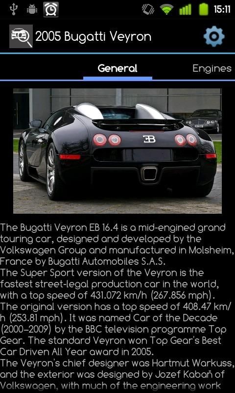 "All Cars Info" have the latest and most current information about automobiles. Here you can find not only new models of the popular automakers but also their history over the years. Auto features are classified into a quite efficient way, so search of parameters will take only a few moments. "All Cars Info" shows a cars' classification by the type of the body, containing also photos for each type, which you will not find in any other application of this kind.